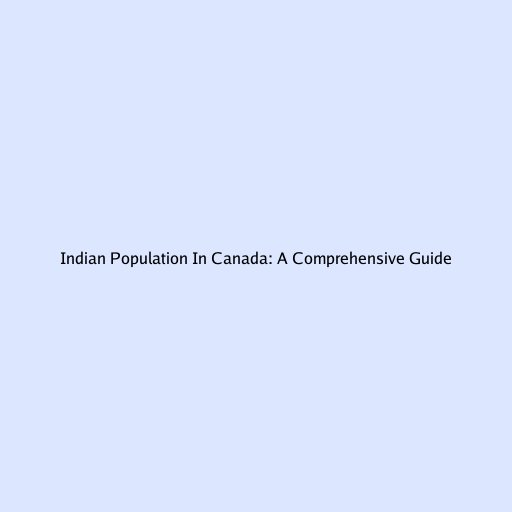 Indian Population In Canada: A Comprehensive Guide